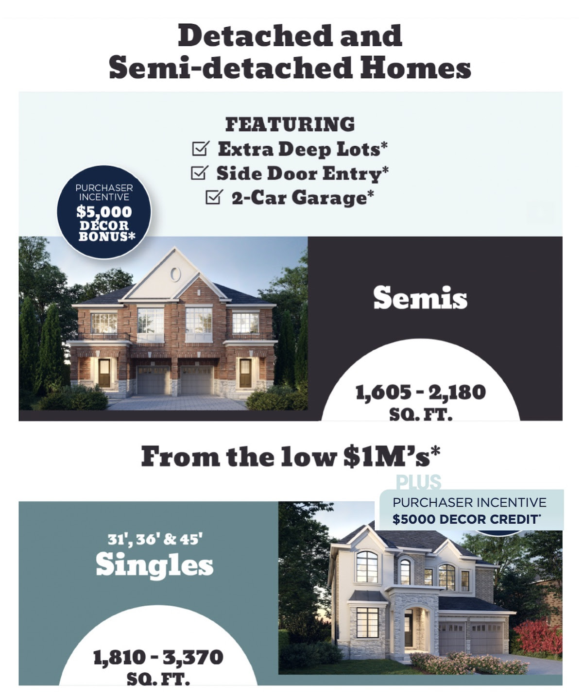 ? Most preconstruction is notorious for being more expensive than resale. This is an incredibly rare exception with a reputable established builder! Our VIP platinum new release pricing begins at prices lower than recent resale prices! VIP pricing for semis begins in the low $1M's: compared to recent resale semis in the area that are selling at a higher price between $1.1M to $1.37M (click to view recent sold comparables). VIP pricing for 31' ft wide single detached homes begins at $1.1M: compared to recent resale 31'ft wide homes selling between $1.175M to $1.45M (click to view recent sold comparables)